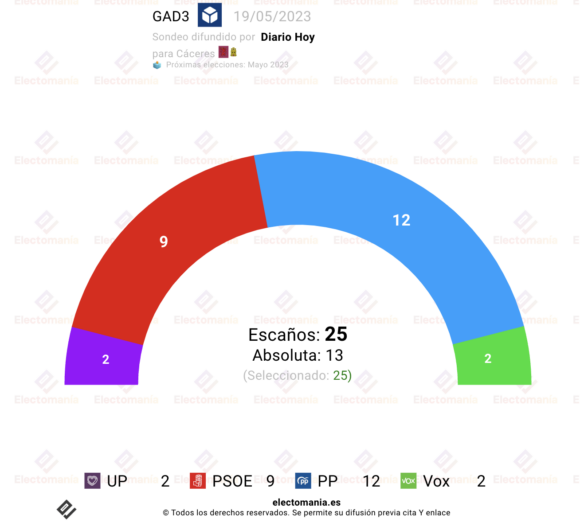 Encuesta Cáceres y Badajoz (GAD3 19My): el PP roza la absoluta en ambas
