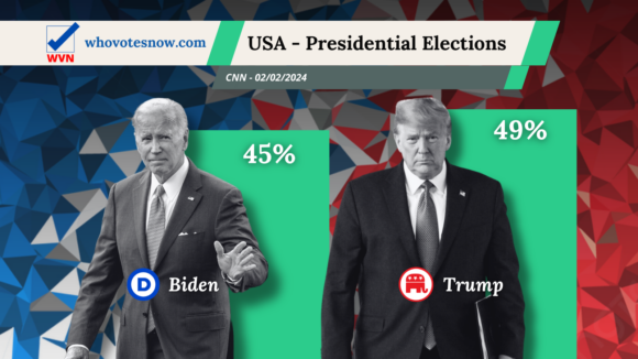 En una de las encuestas, el ex presidente Donald Trump parece tener una ligera ventaja sobre el actual presidente Joe Biden, con un 49% frente al 45% en la intención de voto.