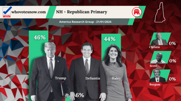 Sondeo de American Research Group para las primarias republicanas en New Hampshire muestra un empate técnico entre Donald Trump y Nikki Haley.