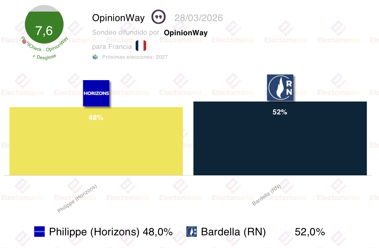 Encuesta Francia (Ow 28 mar): Bardella ganaría las presidenciales