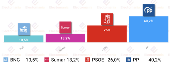 El PP sumaría más diputados en Galicia que toda la izquierda junta, si bien el porcentaje de la izquierda agrupado supera en 9 puntos al de los populares: