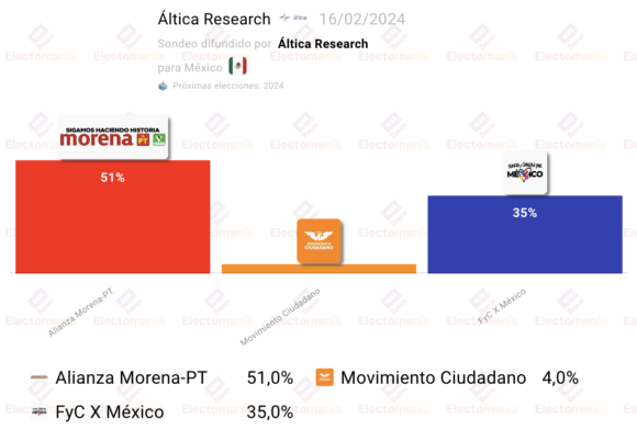 Según el último sondeo de Áltica Research, Morena ganaría las presidenciales con el 51% de los votos.