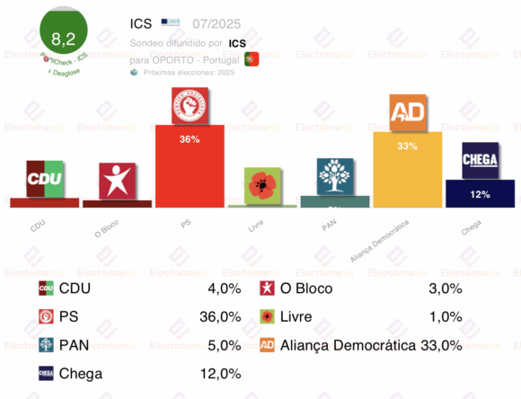 Sondeo para elecciones municipales en Lisboa y Oporto, de ICS, publicado el mes de julio.