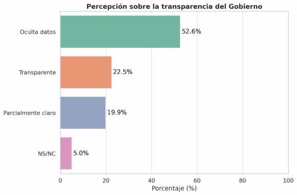 Según el último barómetro de NC Report para La Razón, una mayoría de los ciudadanos mantiene una postura crítica respecto a la actuación gubernamental. Un 52,6% considera que el Ejecutivo está ocultando información, frente a un 22,5% que valora su transparencia y un 19,9% que cree que ha sido solo parcialmente claro. Un 5% no sabe o no responde. La desconfianza es mayor entre los mayores de 55 años (57,3%), mientras que el grado de credibilidad varía según la afinidad política: los votantes del PP y Vox son mayoritariamente críticos, mientras que los del PSOE y Sumar tienden a confiar más en la versión oficial.