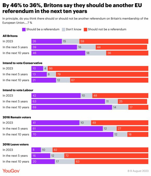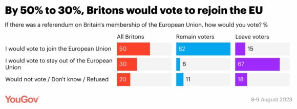 YouGov ha publicado hoy un sondeo en el que pregunta a los británicos su posición sobre permanecer fuera de la UE o unirse de nuevo.