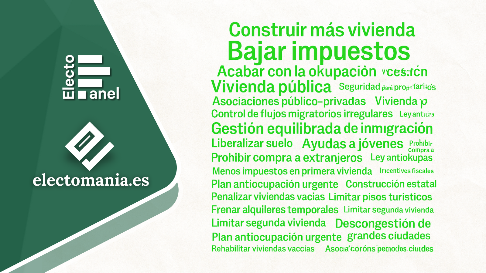 El bloque de Vox opta mayoritariamente por políticas liberalizadoras y de control migratorio y de la ocupación. Sus propuestas más destacadas son “construir más vivienda”, “bajar impuestos” y “acabar con la ocupación”. También proponen incentivar fiscalmente la compra de primera vivienda, restringir el acceso de compradores extranjeros, limitar viviendas turísticas, promover asociaciones público-privadas y endurecer leyes frente a la “okupación”.