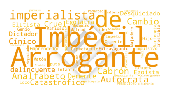 Trump también genera respuestas polarizadas. En general, se le describe con términos como “genio”, “dictador”, “imbécil” y “negociador”: