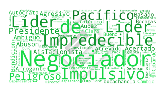 - Centro: Muestra una visión más ambigua, incluyendo “arrogante”, “negociador” e “impulsivo”.