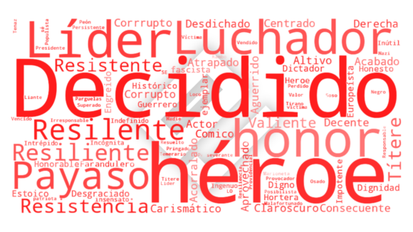 - Derecha: Mayoritariamente positiva, destacando “patriota” y “luchador”, aunque con algunas dudas.