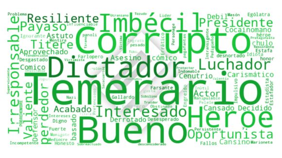 - Izquierda: Muestra opiniones divididas, con términos como “líder” y “decidido”, pero también “payaso” y “populista”.