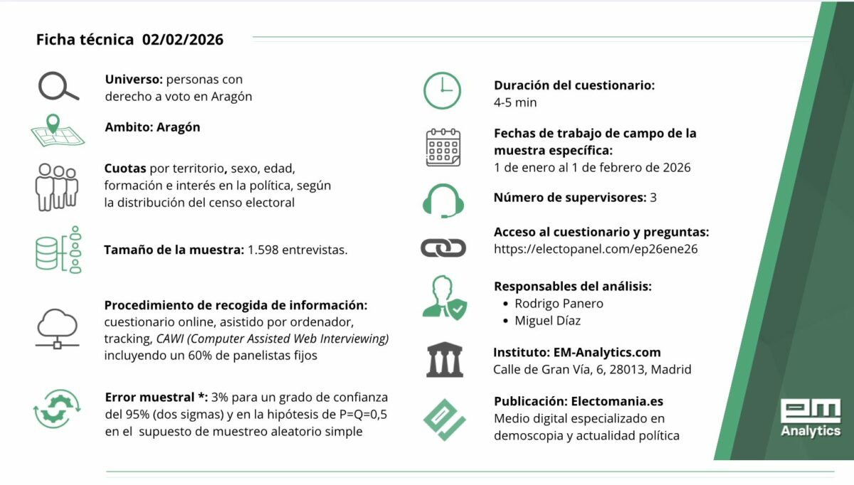 Último ElectoPanel para elecciones autonómicas en Aragón, que forma parte de nuestra cobertura especial para las elecciones del 8-F. La semana que viene comienza nuestro especial seguimiento para Castilla y León, hazte patrón aquí.