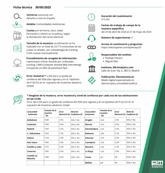 - Comunidad de Madrid: Ayuso baja ligeramente, pero no tendría rival. El PSOE se acerca a MM