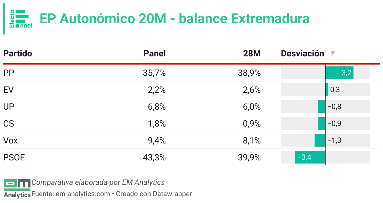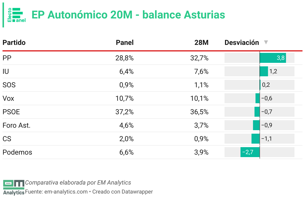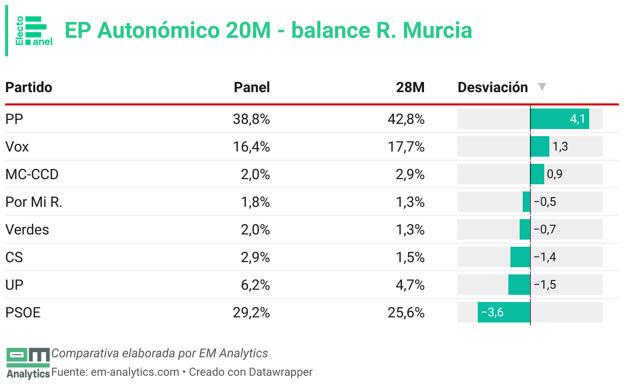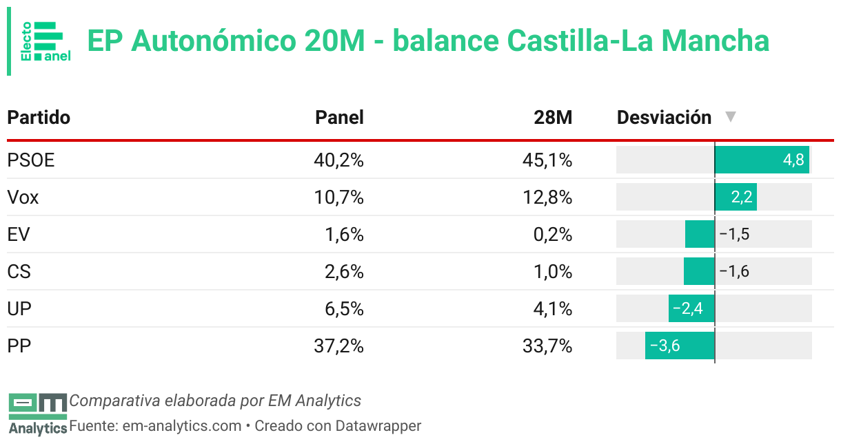 En EM, como hemos hecho siempre, os mostramos los aciertos y errores de nuestro panel y analizamos profundamente dónde se ha podido equivocar el modelo para mejorarlo en el futuro. A continuación os dejamos las tablas de desviación del voto en todas las CCAA.
