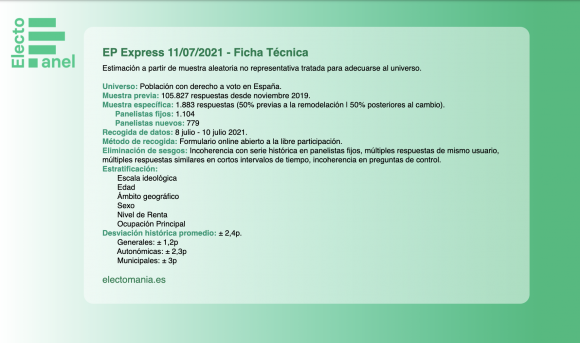 Beneficios exclusivos: Acceso completo: adelanto de los paneles horas antes de su publicación en abierto, panel para generales: (desglose de escaños y voto por provincias y partidos, mapa del partido ganador por provincias), electoPanel autonómico quincenal exclusivo, sección exclusiva para Patrones en El Foro y electoPanel especial VIP mensual exclusivo.