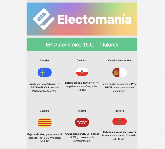 Beneficios exclusivos: Acceso completo: adelanto de los paneles horas antes de su publicación en abierto, panel para generales: (desglose de escaños y voto por provincias y partidos, mapa del partido ganador por provincias), electoPanel autonómico quincenal exclusivo, sección exclusiva para Patrones en El Foro y electoPanel especial VIP mensual exclusivo.