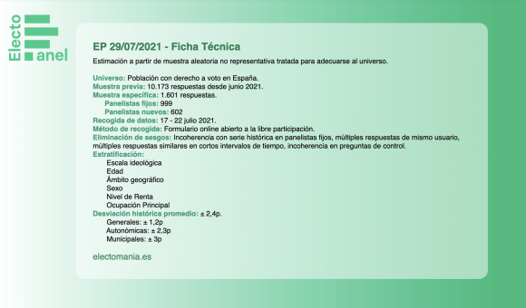 Beneficios exclusivos: Acceso completo: adelanto de los paneles horas antes de su publicación en abierto, panel para generales: (desglose de escaños y voto por provincias y partidos, mapa del partido ganador por provincias), electoPanel autonómico quincenal exclusivo, sección exclusiva para Patrones en El Foro y electoPanel especial VIP mensual exclusivo.