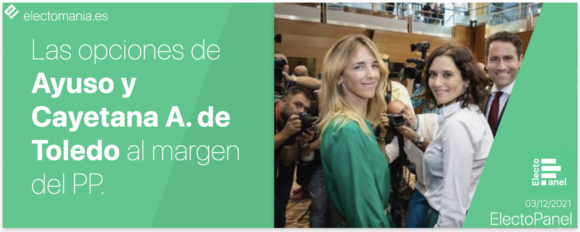 Esta semana damos un nuevo giro a nuestro ElectoPanel y preguntamos por cuál sería el comportamiento de los electores si Cayetana A. de Toledo y Ayuso decidieran abandonar el Partido Popular y fundar un partido propio o presentarse bajo las siglas de otra formación (Cs, Vox).