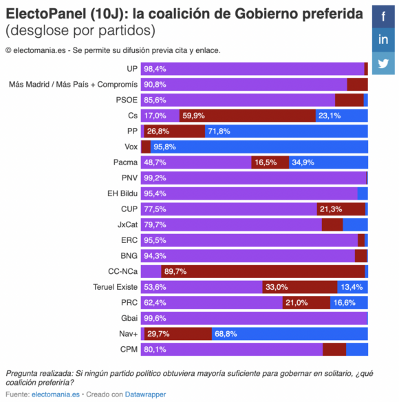 Beneficios exclusivos: Acceso completo: adelanto de los paneles horas antes de su publicación en abierto, panel para generales: (desglose de escaños y voto por provincias y partidos, mapa del partido ganador por provincias), electoPanel autonómico quincenal exclusivo, sección exclusiva para Patrones en El Foro y electoPanel especial VIP mensual exclusivo.