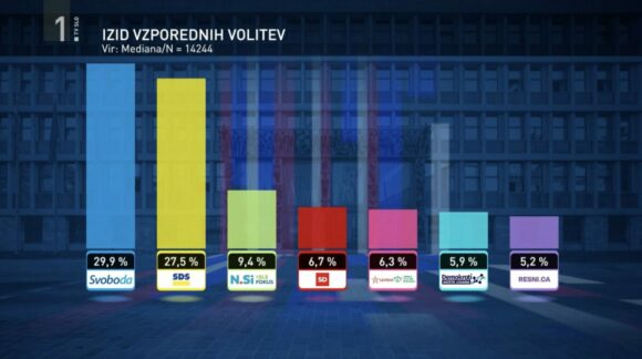 El movimiento liberal GS se sitúa en primera posición con un 29,9% de los votos, logrando una ventaja ajustada sobre el partido conservador SDS, que alcanza el 27,5%. Esta diferencia, aunque relevante, no resulta suficiente para garantizar una mayoría clara en el Parlamento, lo que obliga a ambos bloques a buscar aliados.