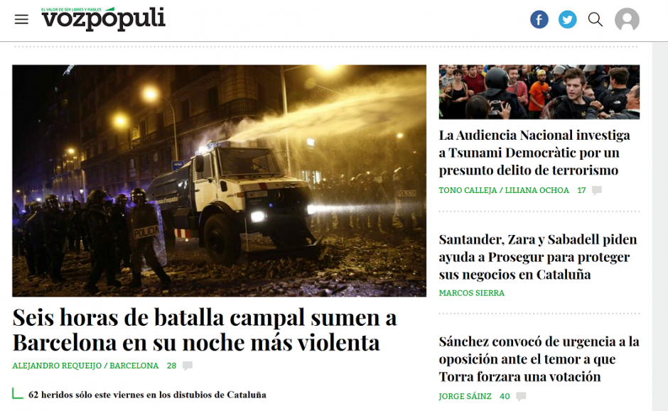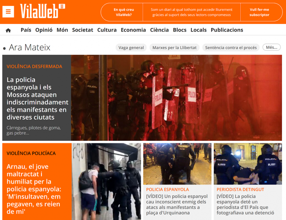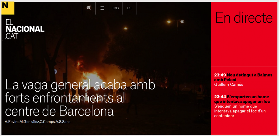 er de otra manera, todos los periódicos y digitales se centran en los importantes disturbios ocurridos estos días en Cataluña.