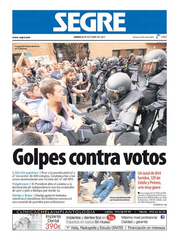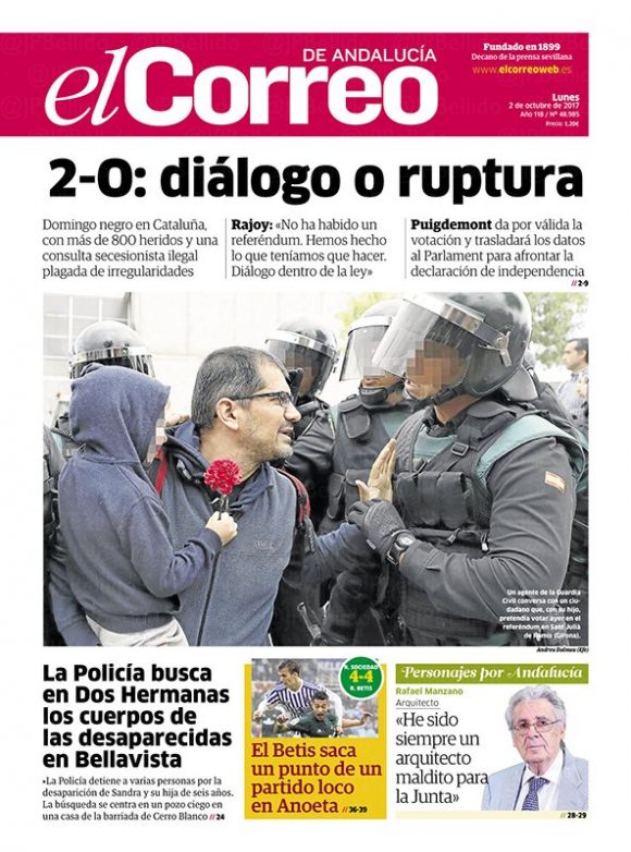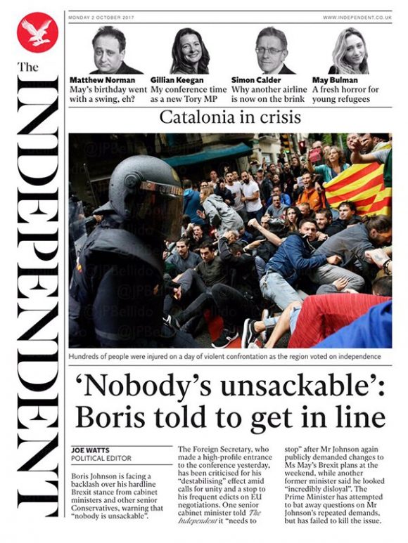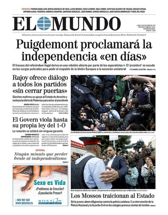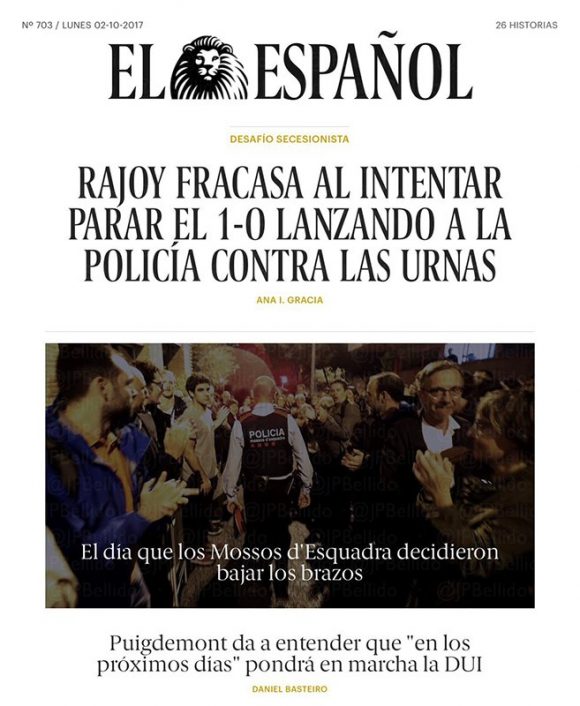 Titulares de prensa nacional e internacional en la resaca del 1 de Octubre: