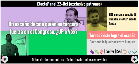 Beneficios exclusivos: Acceso completo: adelanto de los paneles horas antes de su publicación en abierto, panel para generales: (desglose de escaños y voto por provincias y partidos, mapa del partido ganador por provincias), electoPanel autonómico quincenal exclusivo, sección exclusiva para Patrones en El Foro y electoPanel especial VIP mensual exclusivo.