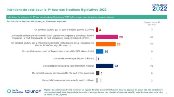 Francia (Harris 18My): la izquierda ganaría en votos, Macron dominaría en escaños