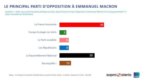 Además, los encuestados ven a Mélenchon como principal líder de la oposición a las políticas de Macron, por delante de Marine Le Pen, que queda relegada a un tercer puesto.