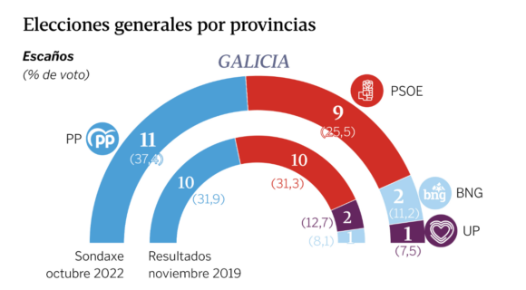 Galicia (Elecciones Generales – Sondaxe 23oct): El 56 % del electorado prefiere a Feijoo como presidente