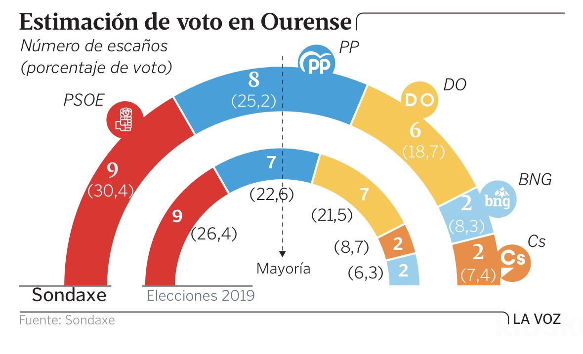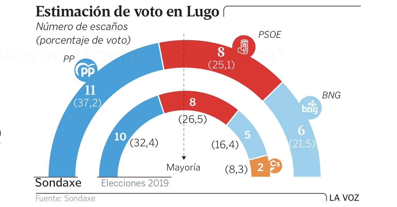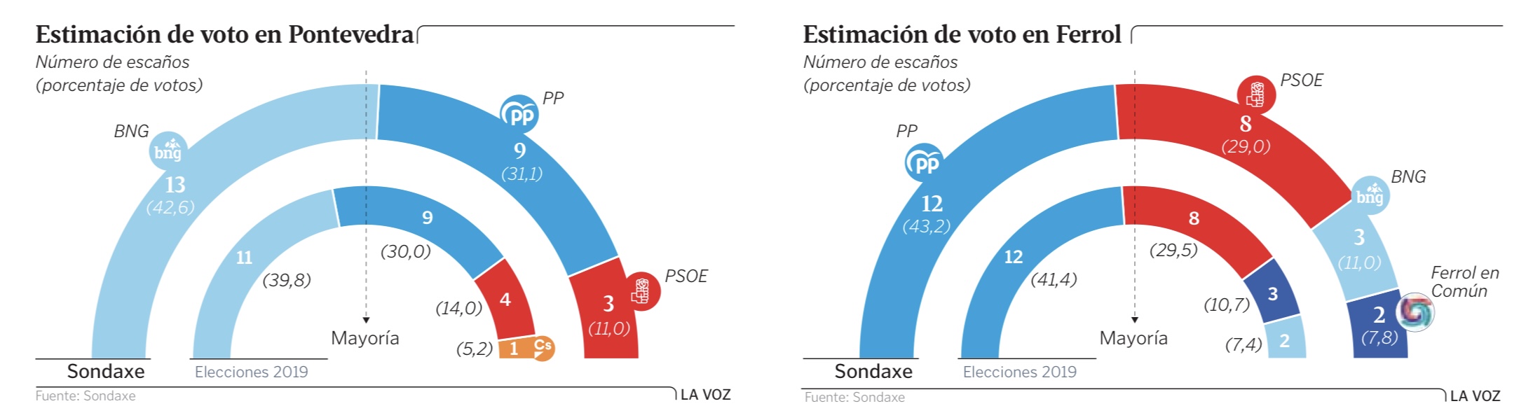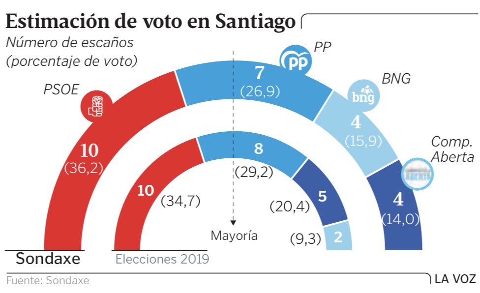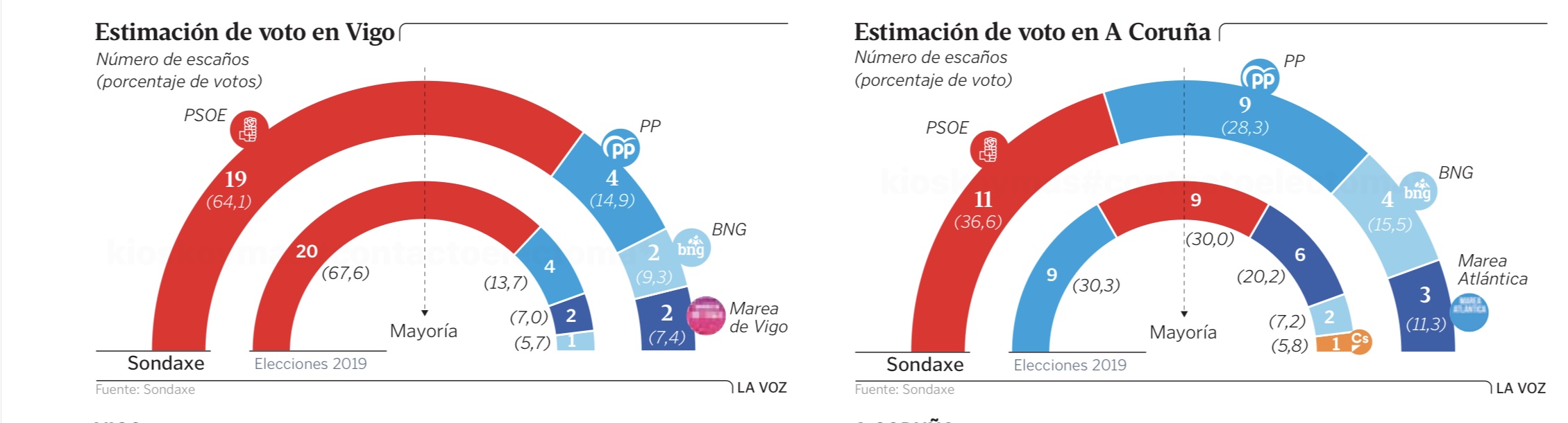 Encuestas de Sondaxe para las principales ciudades gallegas, publicadas por La Voz de Galicia: