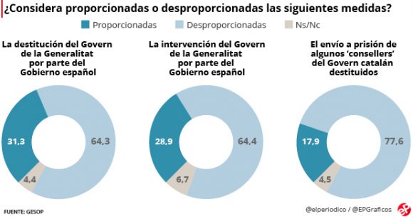 Desglose de las opiniones de los catalanes encuestados por GESOP sobre las medidas aplicadas contra el Govern tras el 155: