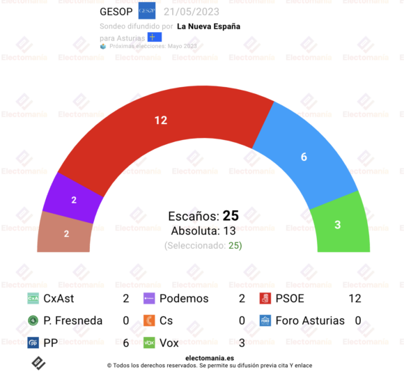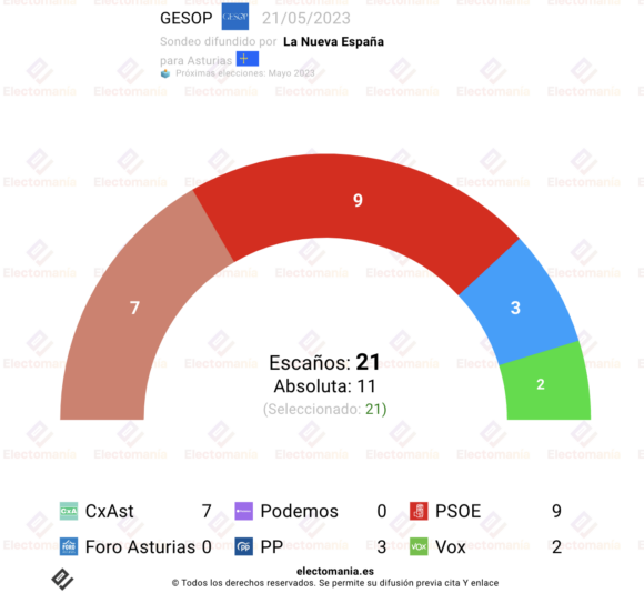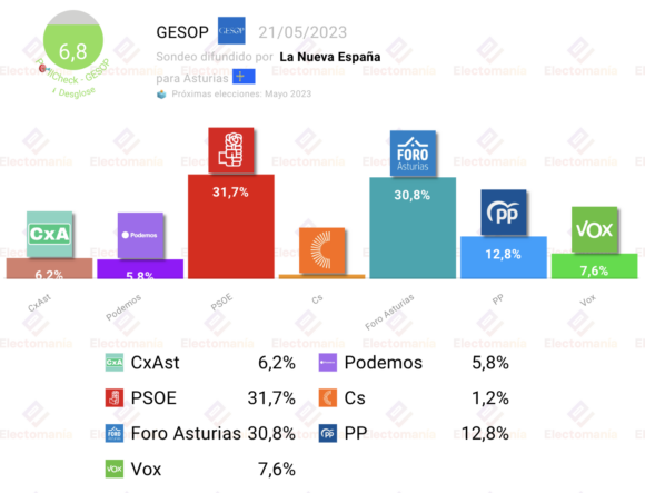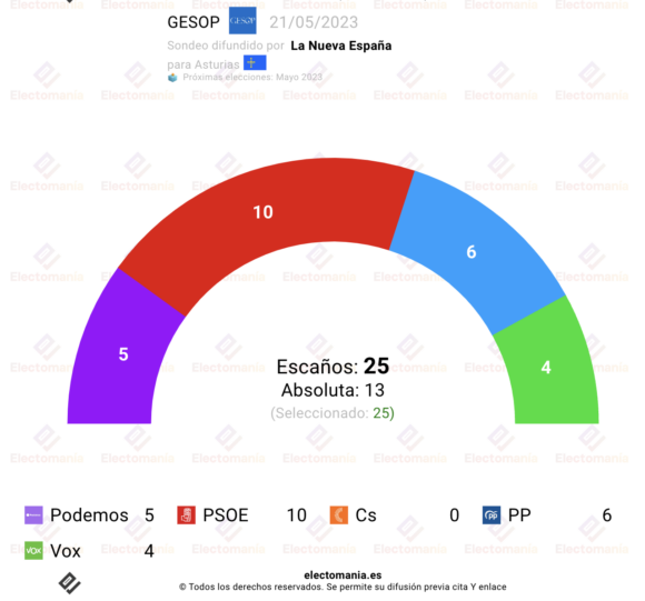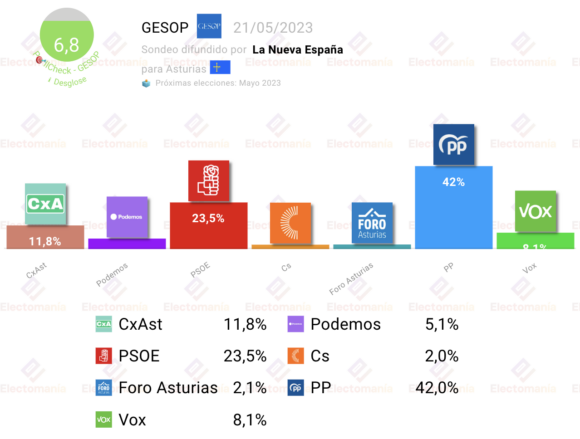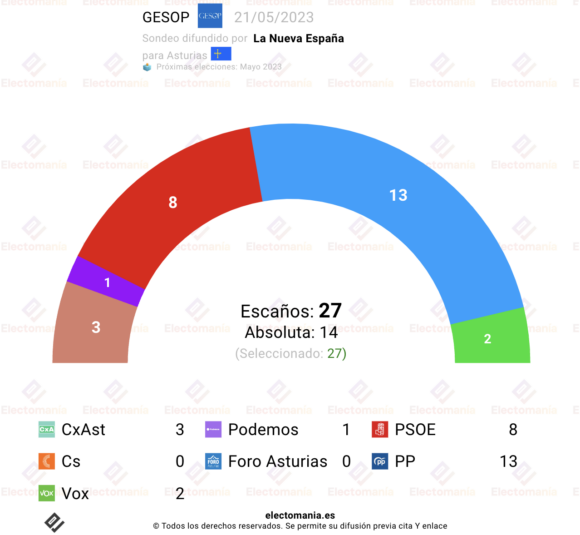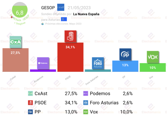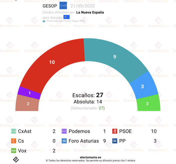 Sondeo de GESOP para autonómicas en Asturias, difundido por La Nueva España.