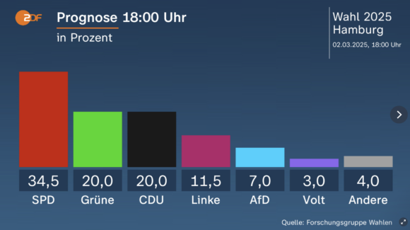 Las elecciones regionales en Hamburgo han confirmado la hegemonía del SPD, que se mantiene como la fuerza más votada con un resultado en torno al 34,5% de los votos, según la proyección de ZDF, o un 33,5% según Infratest Dimap. A pesar de la ligera caída respecto a comicios anteriores, los socialdemócratas podrán seguir gobernando con los Verdes, cuya caída ha sido más pronunciada.