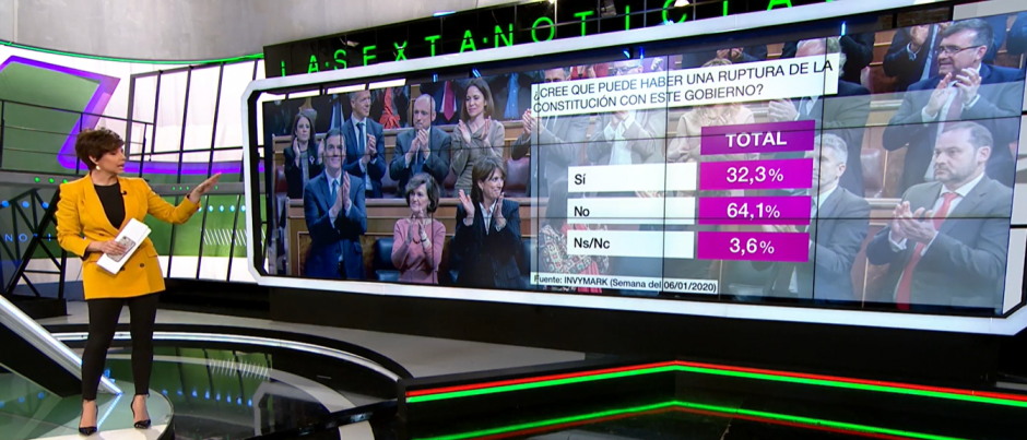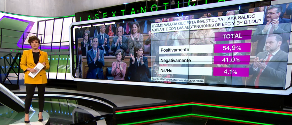 Encuesta realizada por el instituto Invymark para La Sexta, sobre la investidura de Sánchez, los apoyos con que ha contado, y la situación en que queda España para el nuevo período que se abre a continuación.