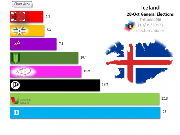 Tras el anuncio del Gobierno islandés de convocatoria de nuevas elecciones tras la filtración de unas cartas en las que se apuntaba a que el actual Primer Ministro había silenciado un escándalo con menores de su padre, comienzan a salir encuestas para los comicios del próximo 28 de Octubre.