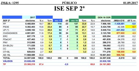 Estimacion de JM&A para el diario Publico de cara a generales del mes de Septiembre.