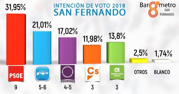 Por su parte, en San Fernando habría pocos cambios y el PSOE volvería a ser el partido más votado.