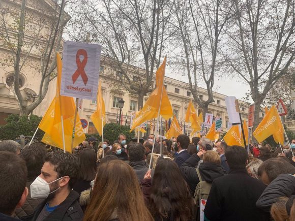 VÍDEO:La concertada protesta una vez más antes de tramitación final de ‘Ley Celaá’ en el Senado: “La batalla no termina”
