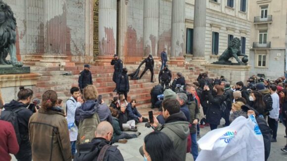 Según informan fuentes de la Policía Nacional, la citación en comisaría se debe a la identificación de los activistas tras su acción del pasado 6 de abril en el Congreso en el que, con el lanzamiento de pintura contra la fachada, denunciaron la inacción frente al cambio climático.
