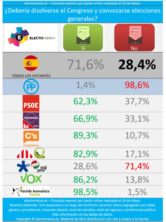 - PNV: no se ha pronunciado. Se debate entre el no tras el apoyo a los presupuestos y el sí que fuerce elecciones. Podrían negociar de nuevo con el PP su apoyo a cambio de medidas políticas/contraprestaciones para Euskadi.