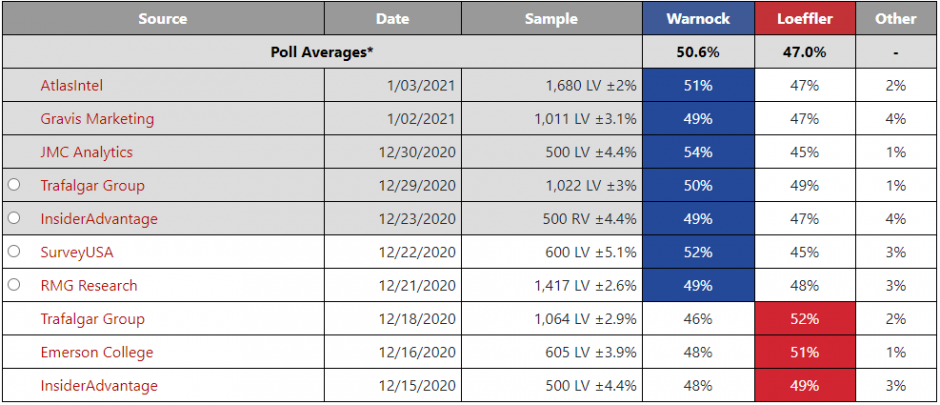Aún queda por llegar la última remesa de encuestas a lo largo del día de hoy e incluso mañana, fatídico 5 de enero en que los georgianos votarán y tendrán en sus manos mucho más que elegir a dos «simples» senadores.