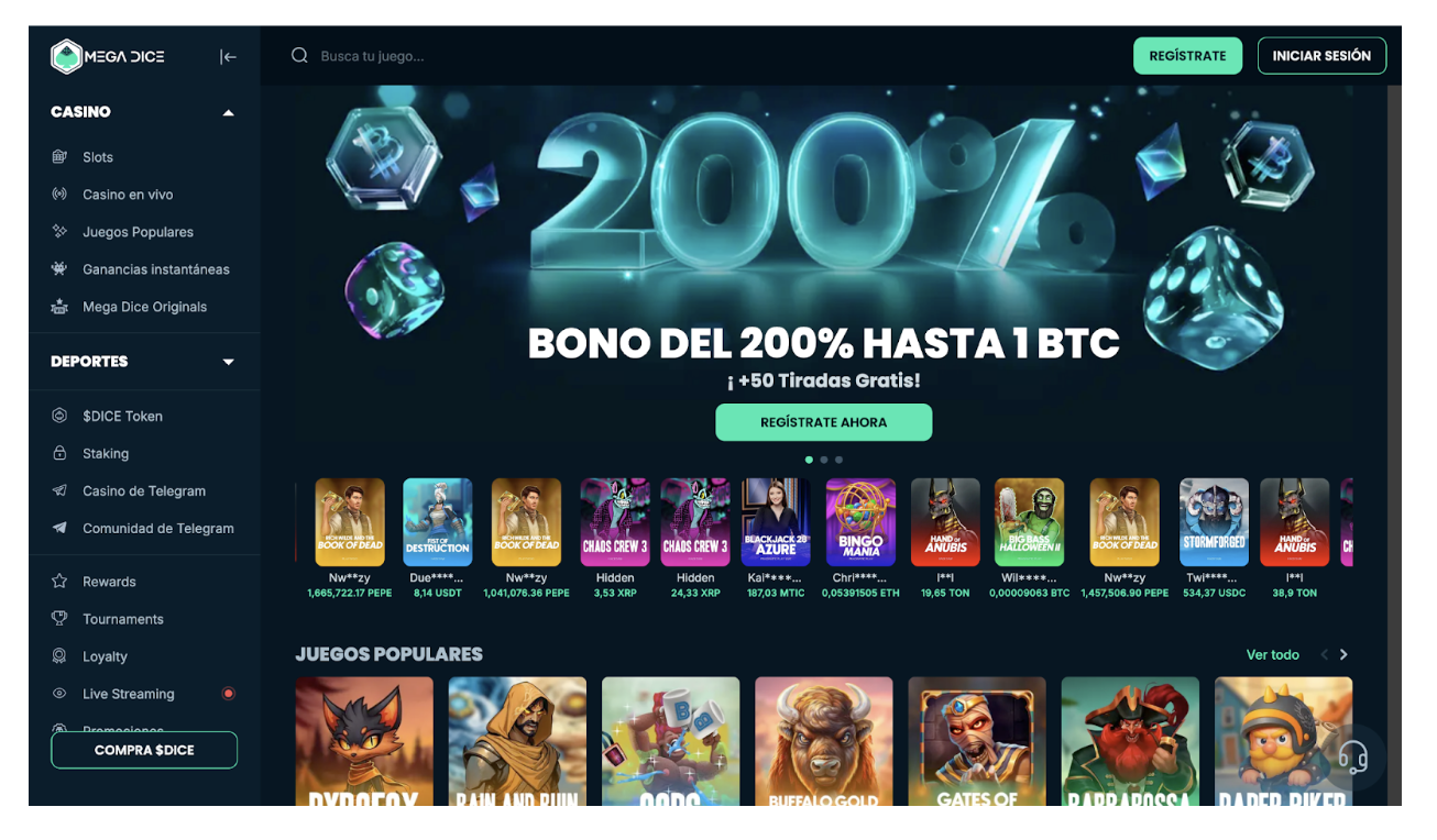 El sitio opera bajo licencia de la Curaçao Gaming Authority, lo que asegura transparencia y protección en cada transacción. Los depósitos y retiros son inmediatos, con soporte para Bitcoin, Ethereum, Tether, Solana, Ripple o Litecoin. No hay procesos KYC ni demoras: todo ocurre en segundos. Además, su token propio $DICE otorga recompensas exclusivas y acceso a torneos con premios en criptomonedas.