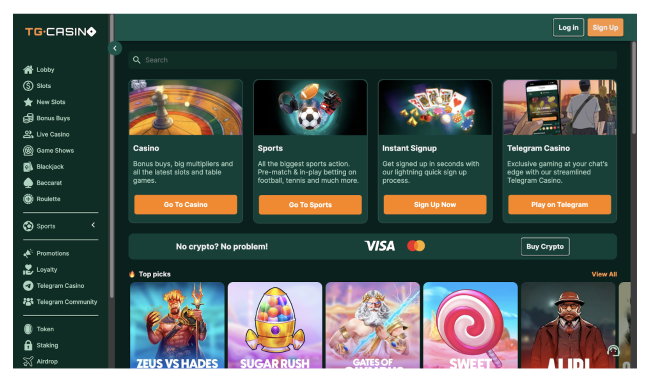 5. TG.Casino – Apuestas en deporte móviles y 100 % cripto desde Telegram