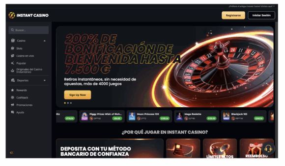 Instant Casino es sinónimo de velocidad. Su plataforma, moderna y perfectamente optimizada para móvil y ordenador, se ha convertido en una de las casas de apuestas deportivas en español más ágiles del momento. Cubre una amplia gama de eventos, desde fútbol, tenis y baloncesto hasta golf, UFC y eSports, con cuotas competitivas y un sistema de apuestas en vivo que actualiza resultados en tiempo real. Además, mantiene una alianza con la Juventus, ofreciendo sorteos exclusivos y experiencias únicas para los aficionados.
