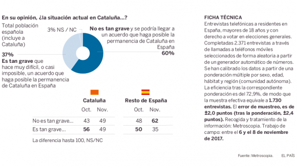 3. Tanto Cataluña como el resto de España piensan cada vez más que la independencia no es posible a corto plazo.