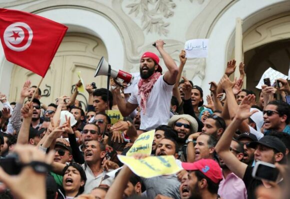 Activistas, defensores de los derechos humanos y ciudadanos organizaron la protesta ‘Civiles contra el golpe’, que ha comenzado a las 10.00 hora local cerca de la plaza del Bardo, informa Mosaique FM.