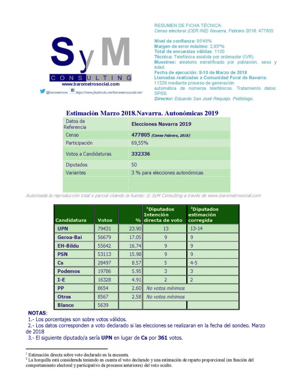 Encuesta de SYM para unas hipotéticas elecciones autonómicas en Navarra.