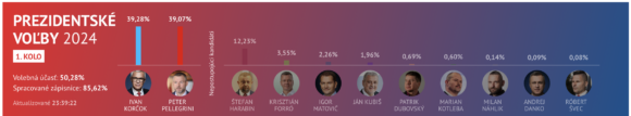Los resultados de la primera vuelta también destacan otros candidatos en la contienda, como Štefan Harabin, Krisztián Forró, Igor Matovič, Ján Kubiš, Marian Kotleba y Patrik Dubovský, aunque sus porcentajes de votos no les han colocado en una posición competitiva para avanzar a la segunda vuelta.