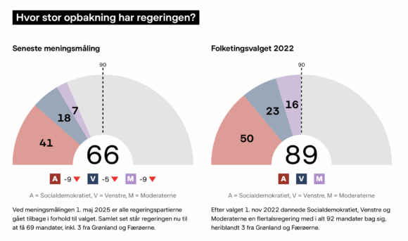 Última encuesta: El sondeo de Epinion de mayo de 2025 muestra una pérdida de mayoría de los partidos del gobierno.