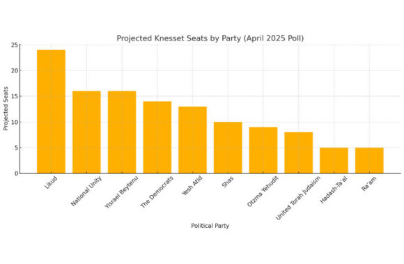 Última encuesta: Una encuesta de Kantar del 2 de mayo de 2025 proyecta 64 escaños para la oposición (Yesh Atid, National Unity, Yisrael Beiteinu, Ra’am, Demócratas) y 51 para el gobierno (Likud, Mafdal-RZ, Shas, UTJ).